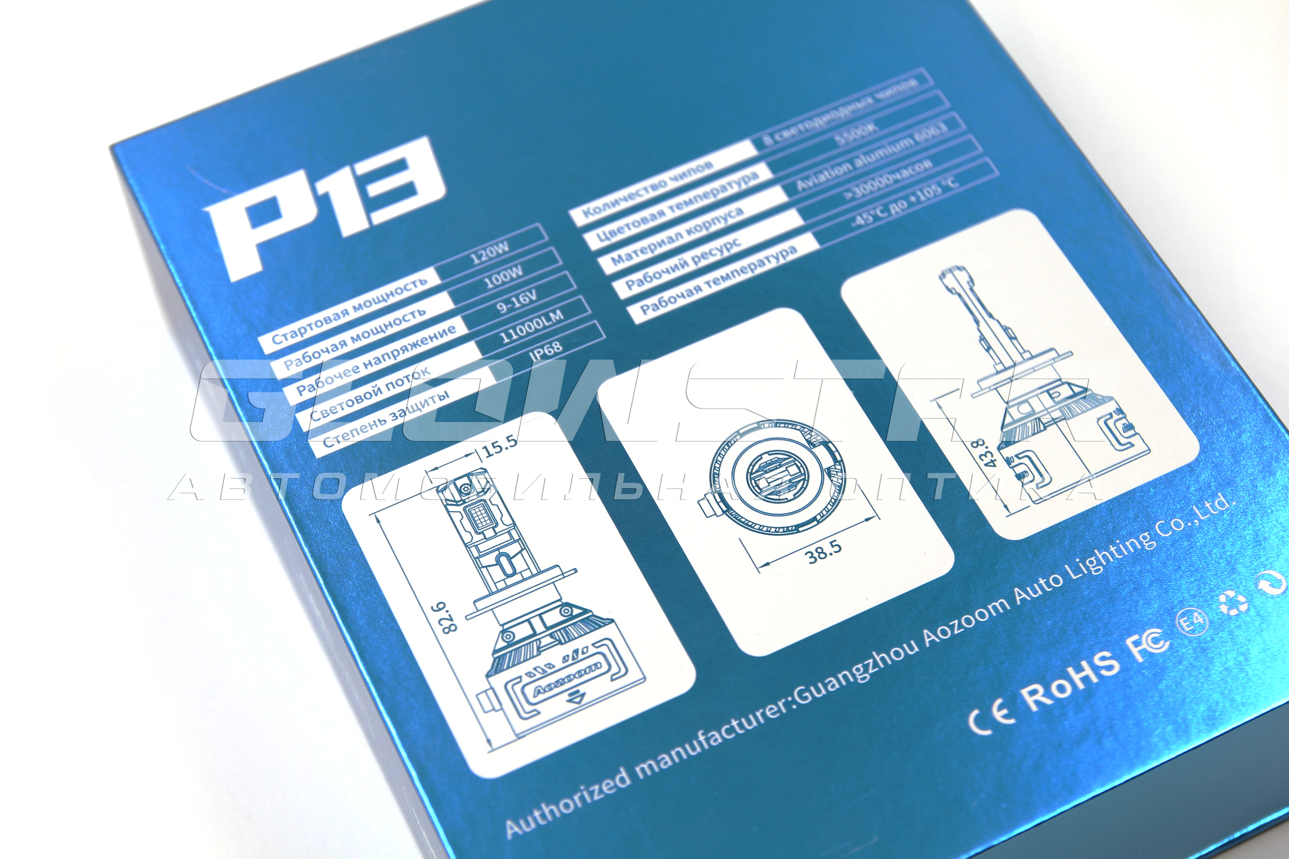 Aozoom P13/H1 с вентилятором 12V 100W 11000Lm (комплект, 2шт)